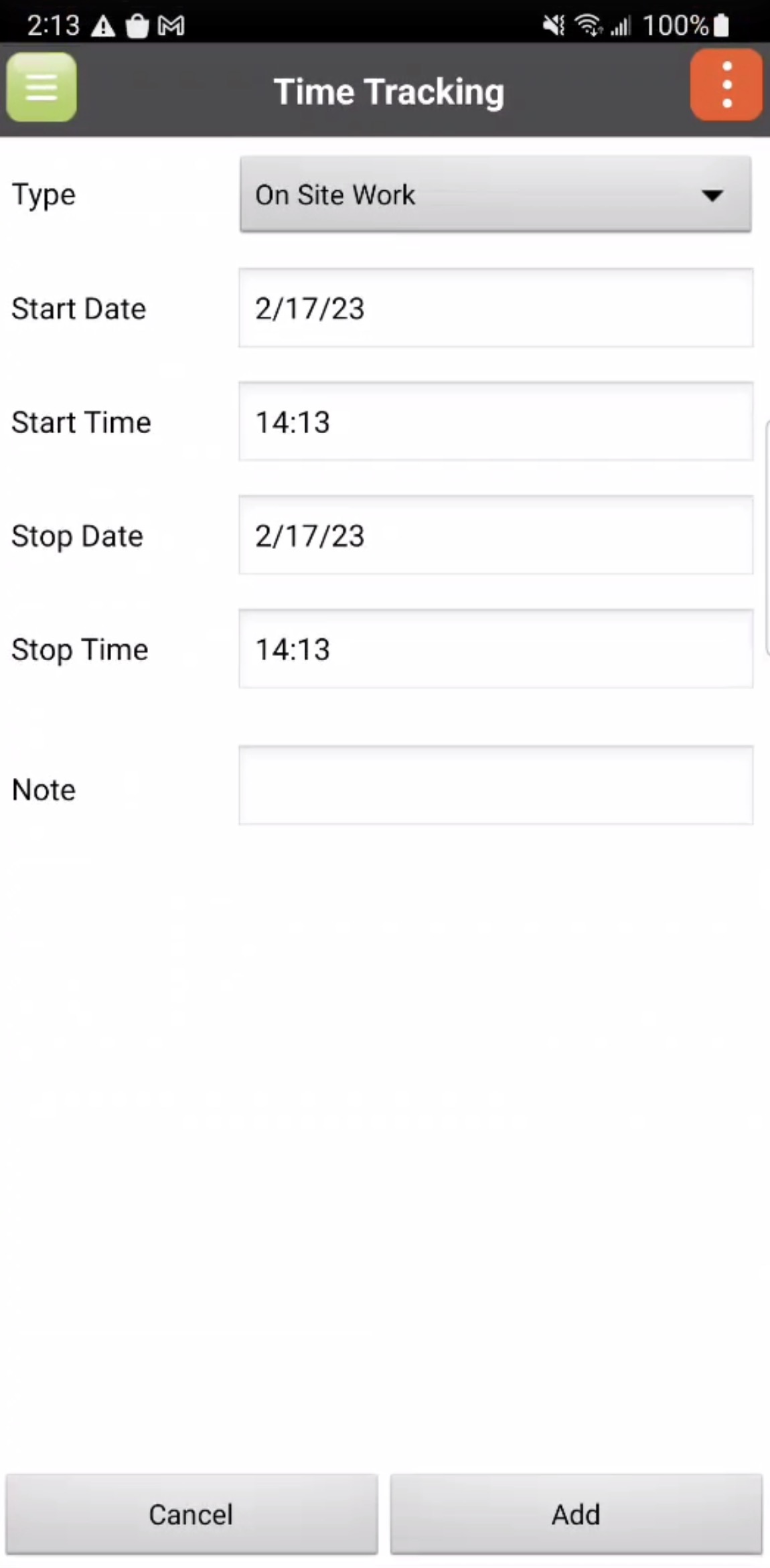 Once you are satisfied with the data entered, press the Add button to confirm the updated time tracking.