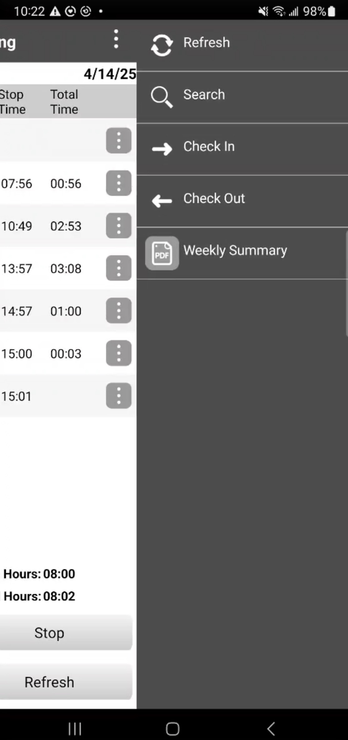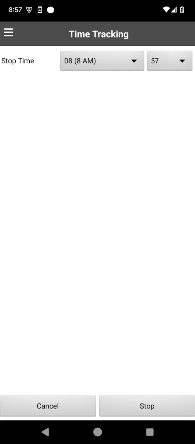 For a single user, there are two different ways to check in on the mobile device. The following subsections will address the different ways a single user will be able to check in and out from their device. Checking in or out will automatically stop any ongoing time tracking activities.