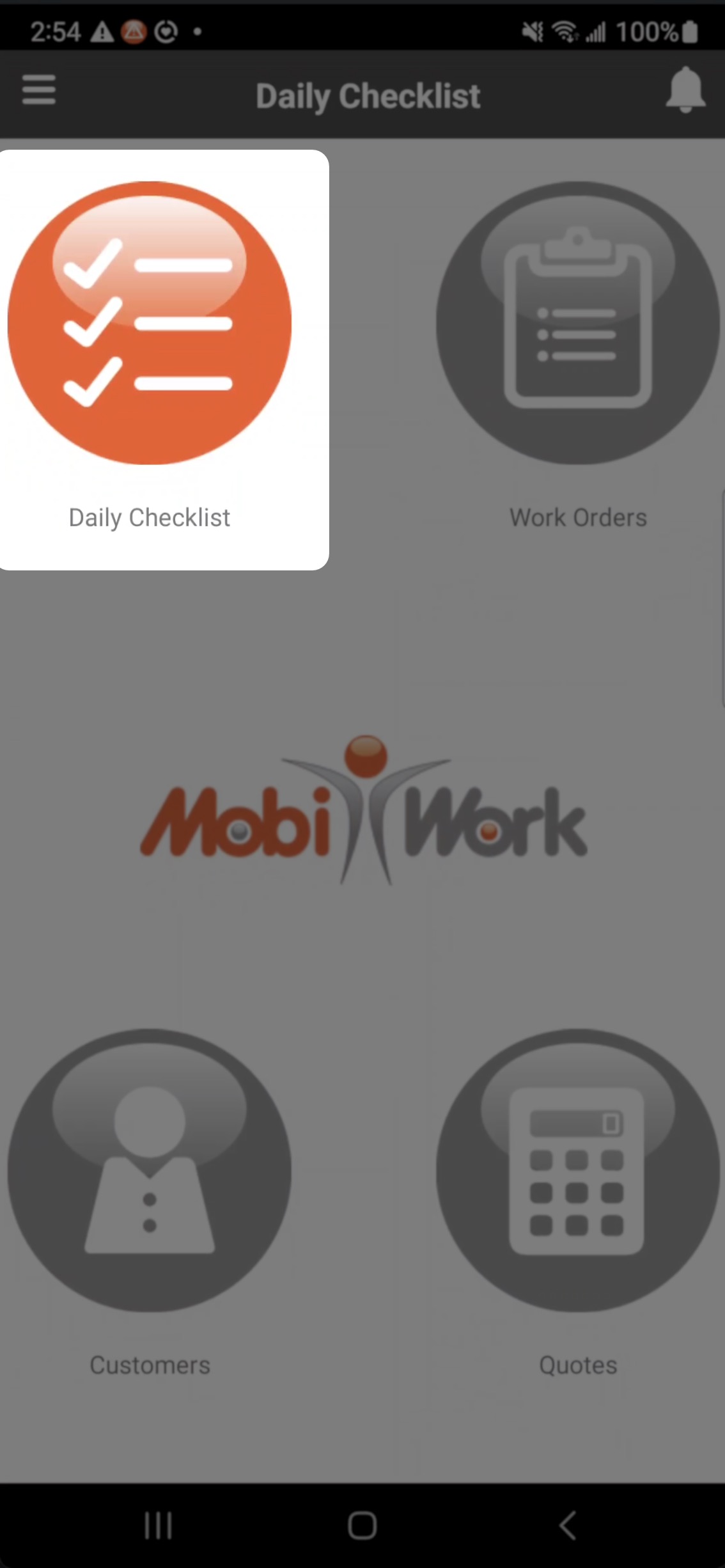 You can easily check in and check out directly from the Daily Task List on your mobile app. For quick access, simply tap the large orange button labeled "Daily Task List" on your home screen. This convenient feature allows you to manage your workday efficiently—no need to navigate through multiple menus: