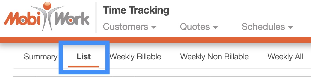 The Time Tracking "List" tab is one of the tabs that can be found on the Time Tracking feature page; from this page you can see all the hours that your users worked on one page.