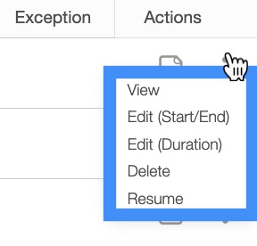 | "Resume" | This will only appear if the time tracking has a checkmark image. This action will resume the time tracking from where the user left off. |