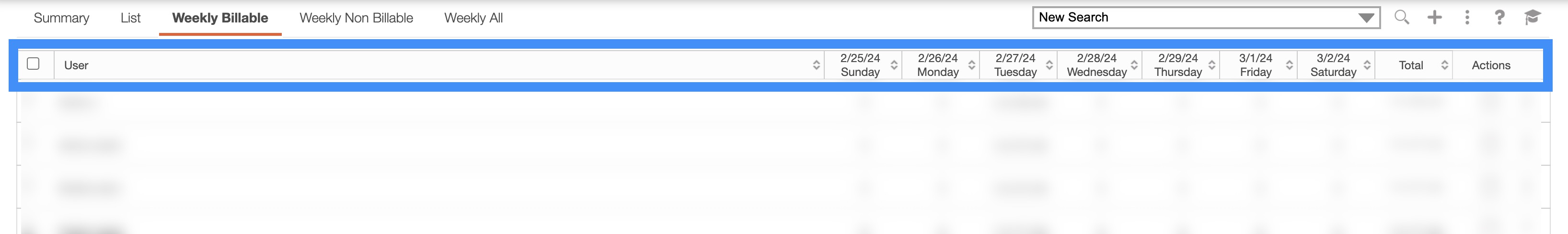 In the "Weekly Billable" tab, the columns are structured to display the dates of the week as well as any billable hours that the user has worked.