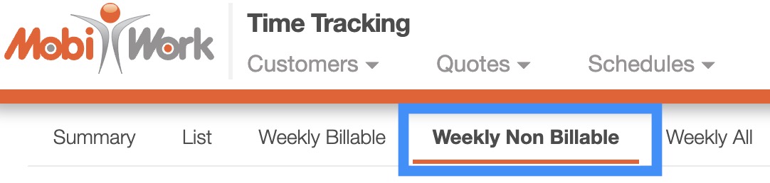 In the "Weekly Non-Billable" tab, the columns are structured to display the dates of the week as well as any non-billable hours that the user has worked.