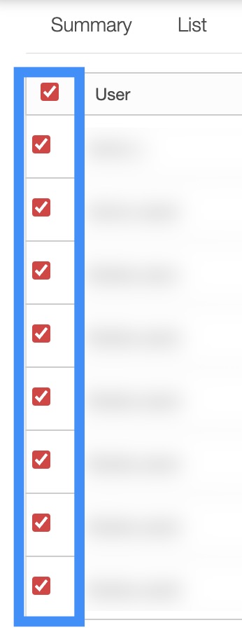 By clicking the topmost checkbox in the column heading you will select all the users.