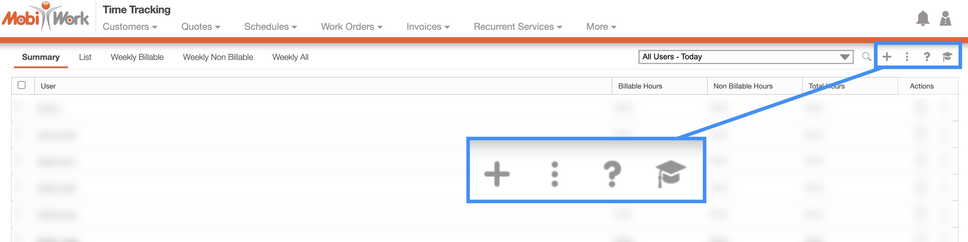 The Plus Sign button which will allow you to quickly add a new time tracking for a user.