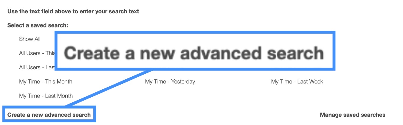 To create a new saved search, select the "Create a New Advanced Search" option from the search menu: