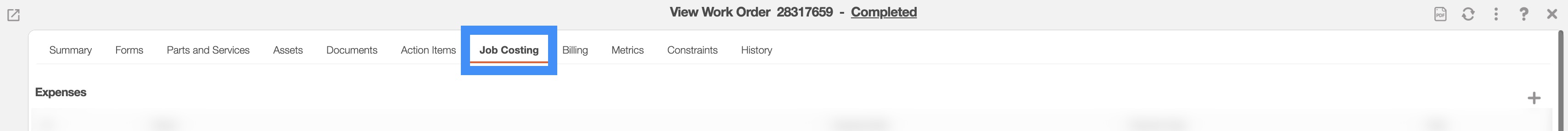 Once you open the View Work Order pop-up window, select the "Job Costing" tab: