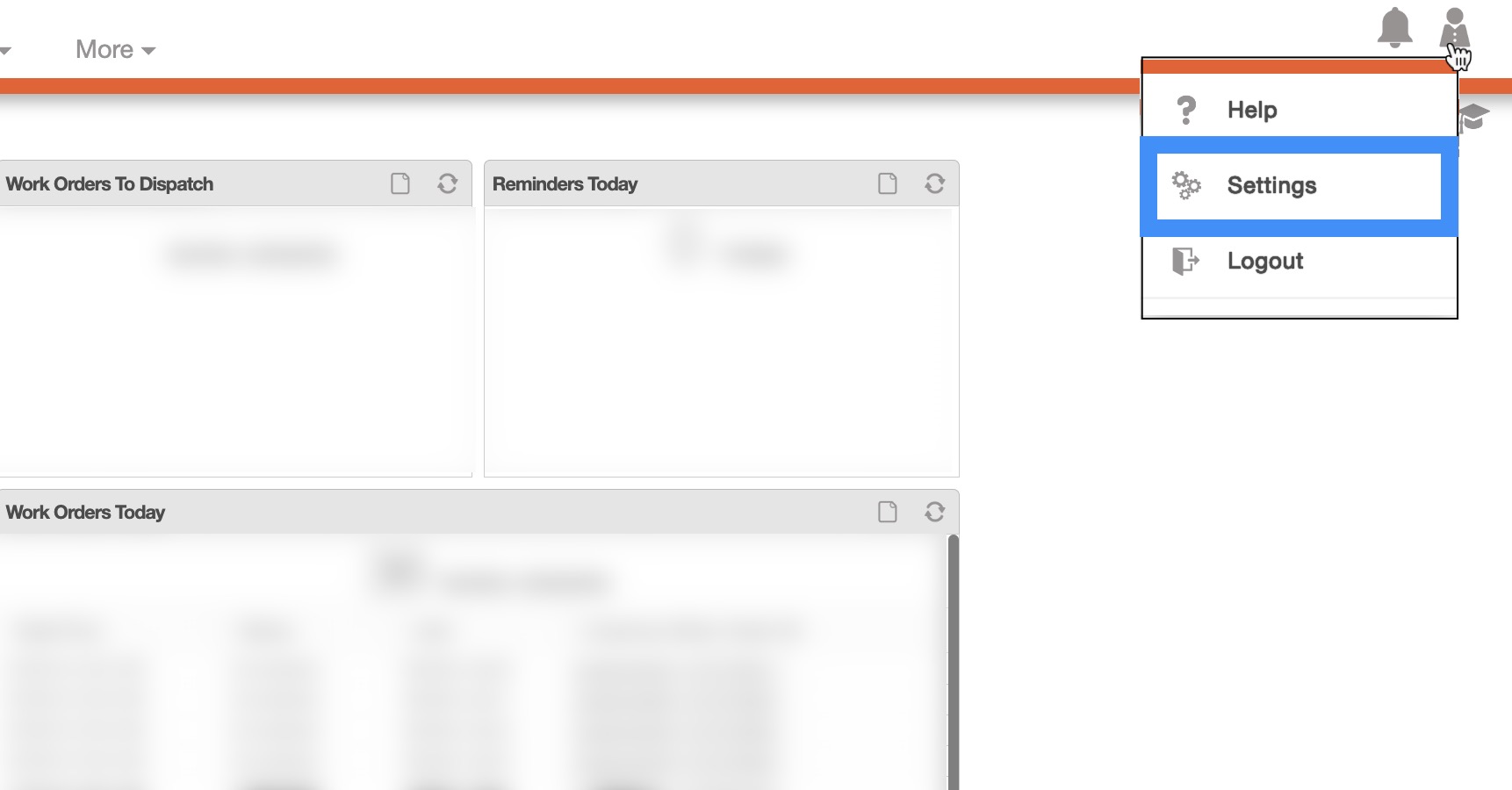 To update your business logo, first access the "Settings" drop-down from your User Actions: