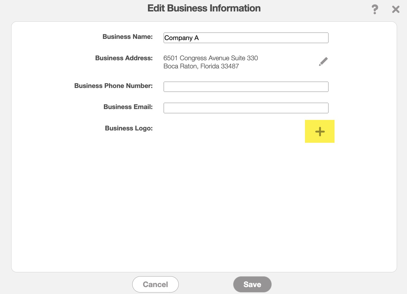 If you do not already have a company logo, you can click the Plus Sign button to add one.