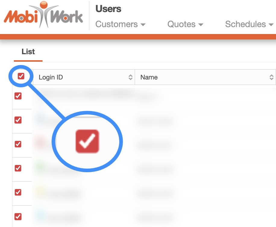 MobiWork allows you to disable multiple users at once, thus saving you time and energy from having to disable users one at a time.
