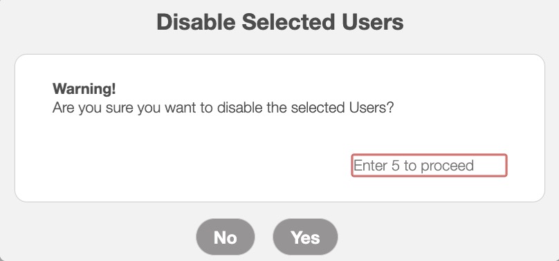 A warning will then appear asking to confirm if you would like to disable the selected users: