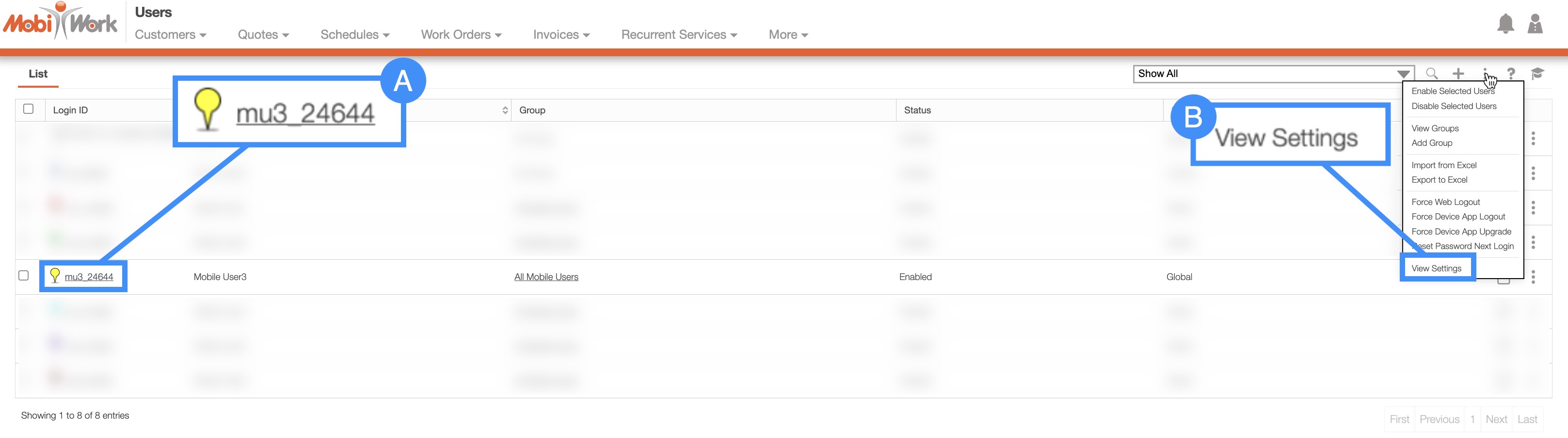- From the "List" tab there are two different ways you can access the Settings page. For more information on how to access the "List" tab, please see the User List page: