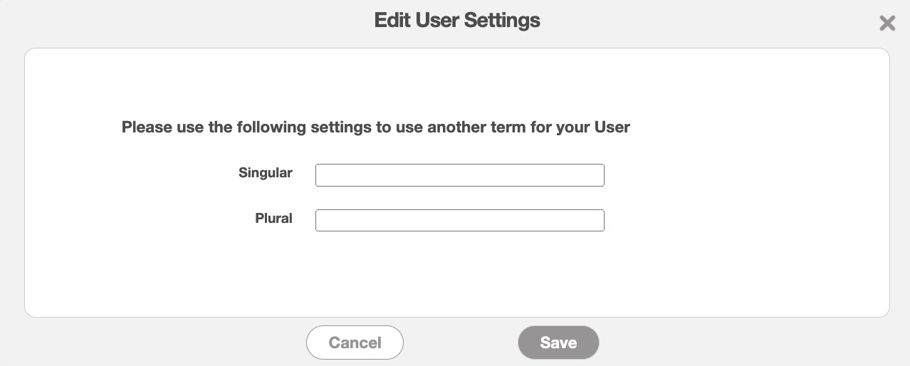 The "Users Settings" section will display both the singular and plural versions of how you refer to your MobiWork users (e.g., employee / employees, technician / technicians, etc.):