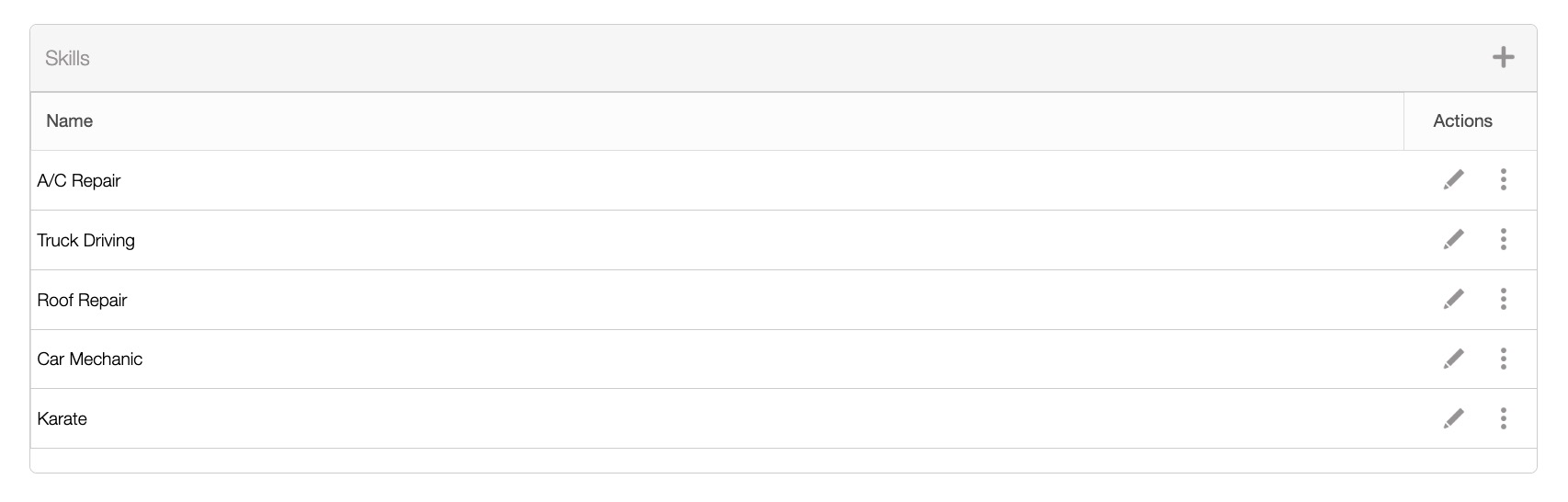 The "Skills" section will allow you to add skills for your company database. Skills are a major component of what is needed by users to complete a work order: