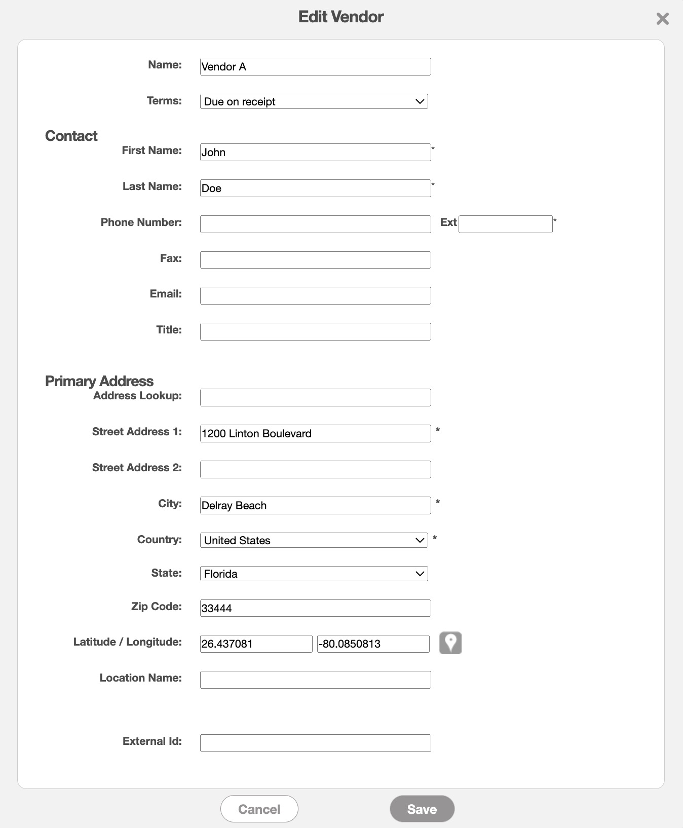 Regardless of how you choose to edit an individual vendor, the Edit Vendor pop-up window will then appear: