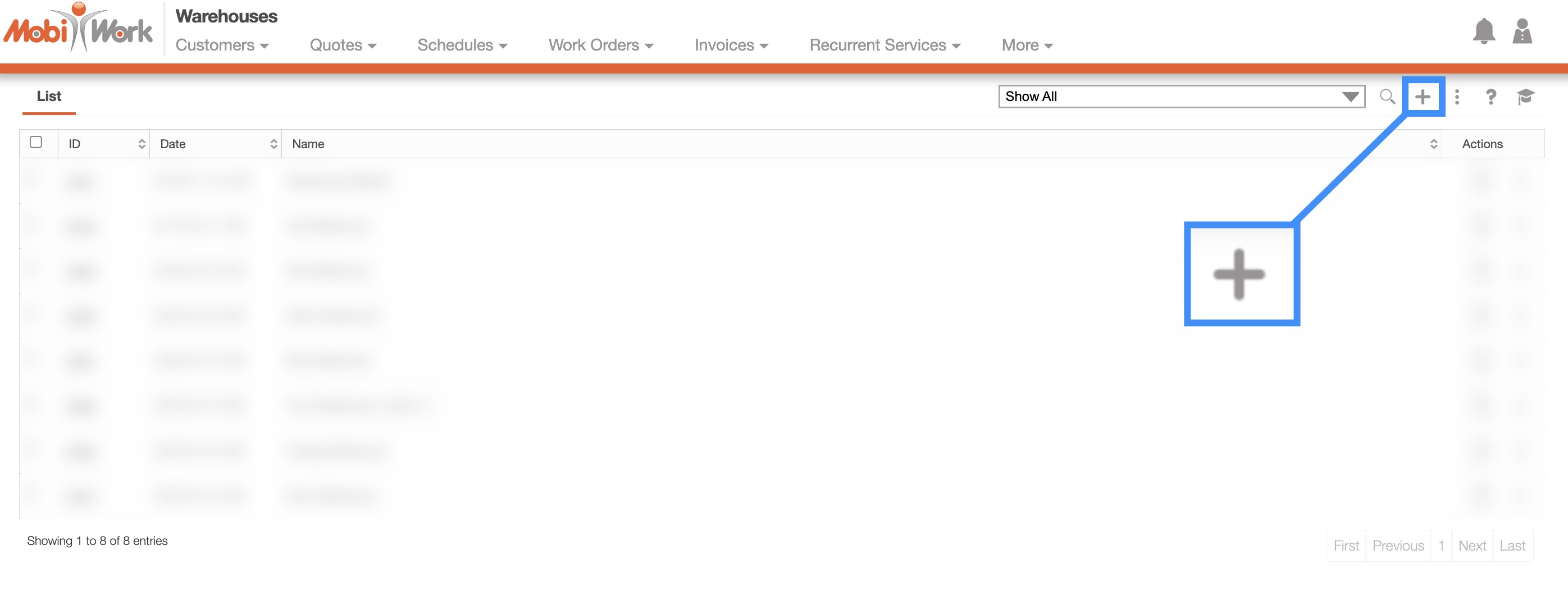 In MobiWork, there are several ways to add a warehouse to your system. The subsections below will highlight how to access the Add Warehouse pop-up window.