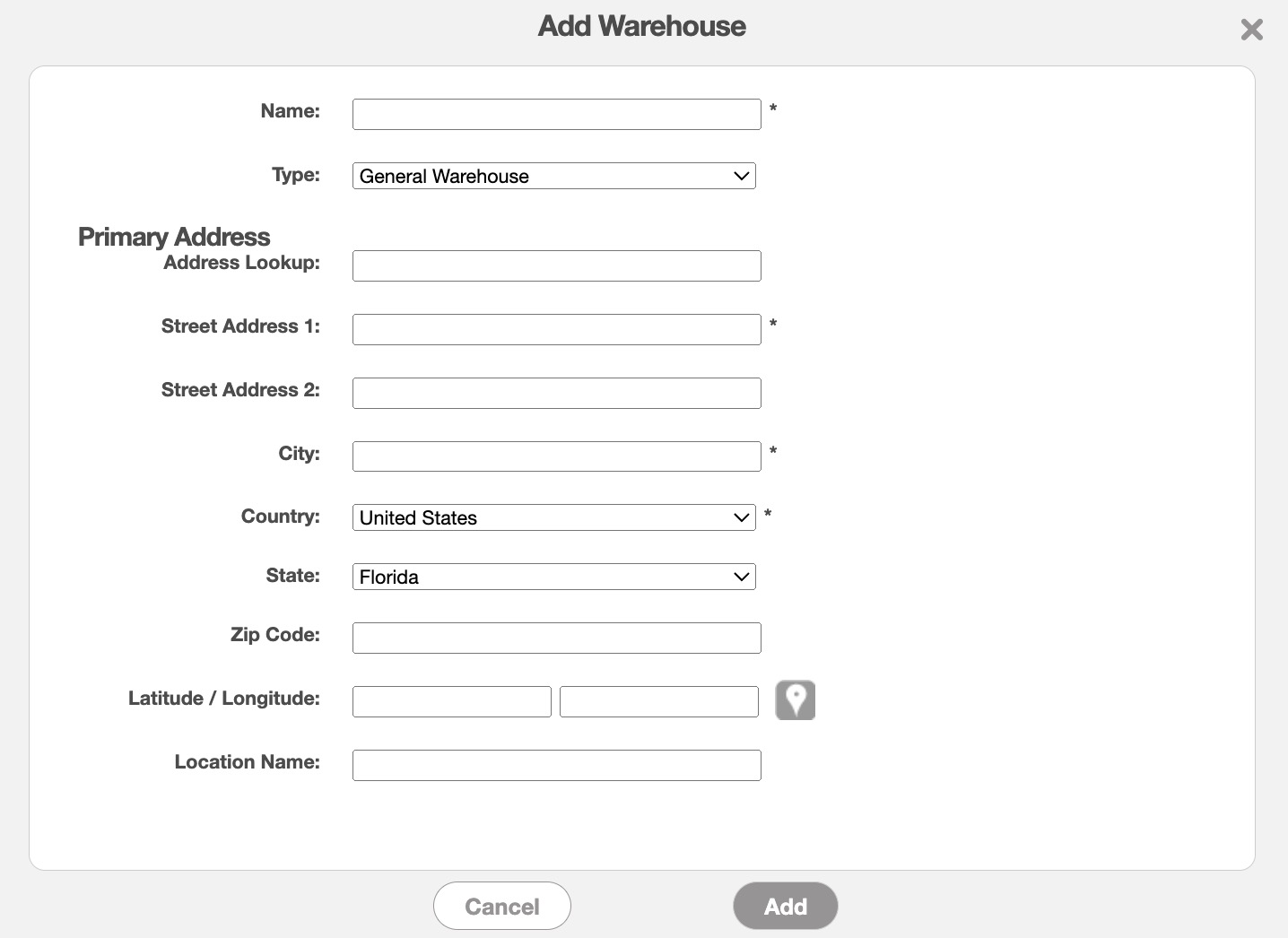 Once you are satisfied with the information entered, click the Add button to save your new warehouse.