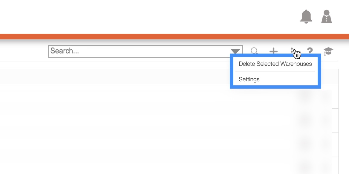 The More Actions button (represented by the three vertical dots) which will allow you to delete multiple warehouses.