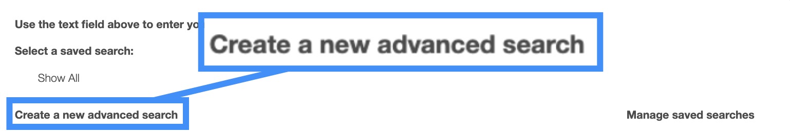 To create a new saved search, select the "Create a New Advanced Search" option from the search menu: