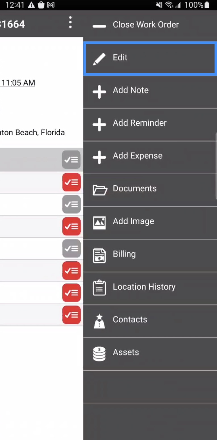 To edit a mobile work order, you will first need to access the View Work Order page. For more information on how to access this page, please see the View Work Order on Device page.