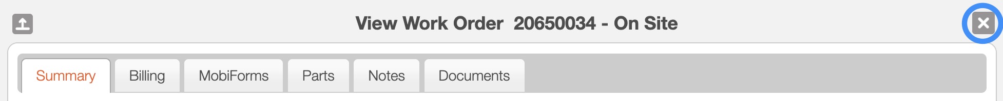 The X button will allow the customer to close out of the View Work Order pop-up window: