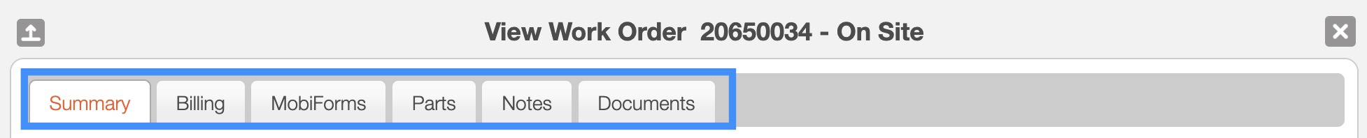 Work Order Tabs
