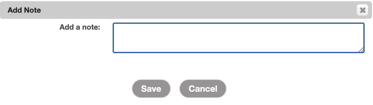 The Add Note pop-up window will then appear. In this pop-up window, the customer should type the note and once they are satisfied click the Save button: