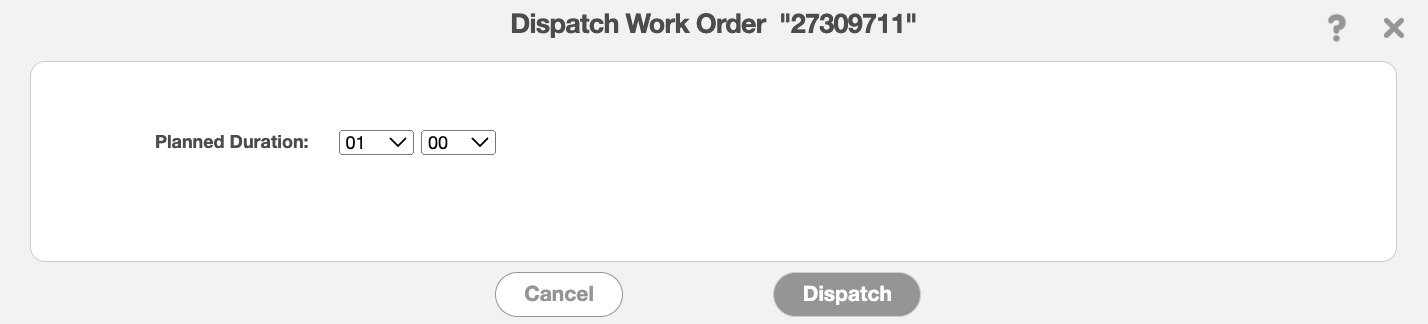 Upon selecting "Edit Duration Only," the Dispatch Work Order pop-up window will appear, enabling you to adjust the duration of the work order: