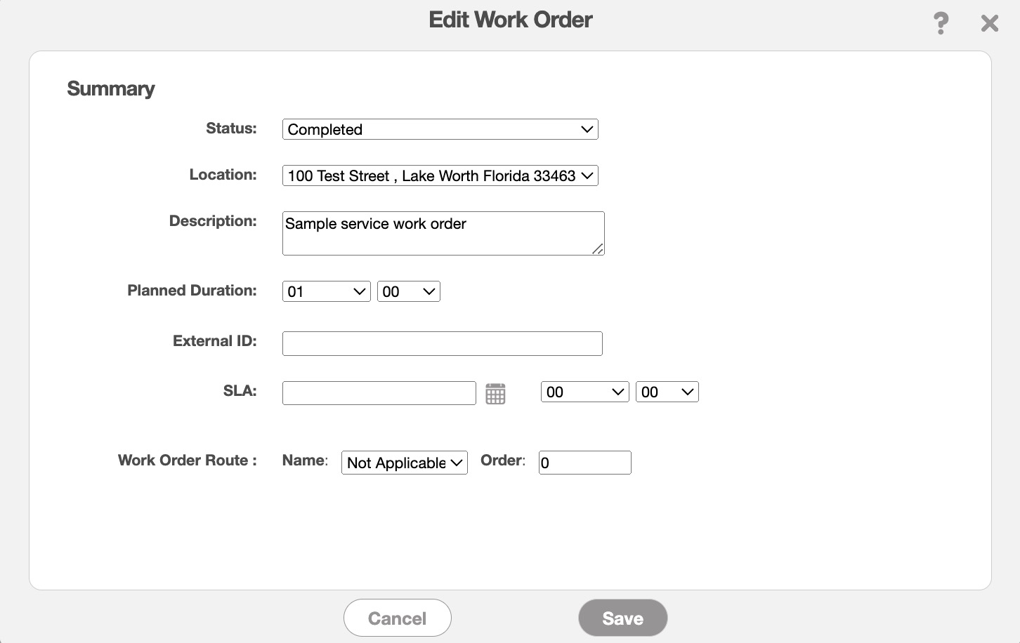 Regardless of how you choose to edit an individual work order, the Edit Work Order pop-up window will then appear: