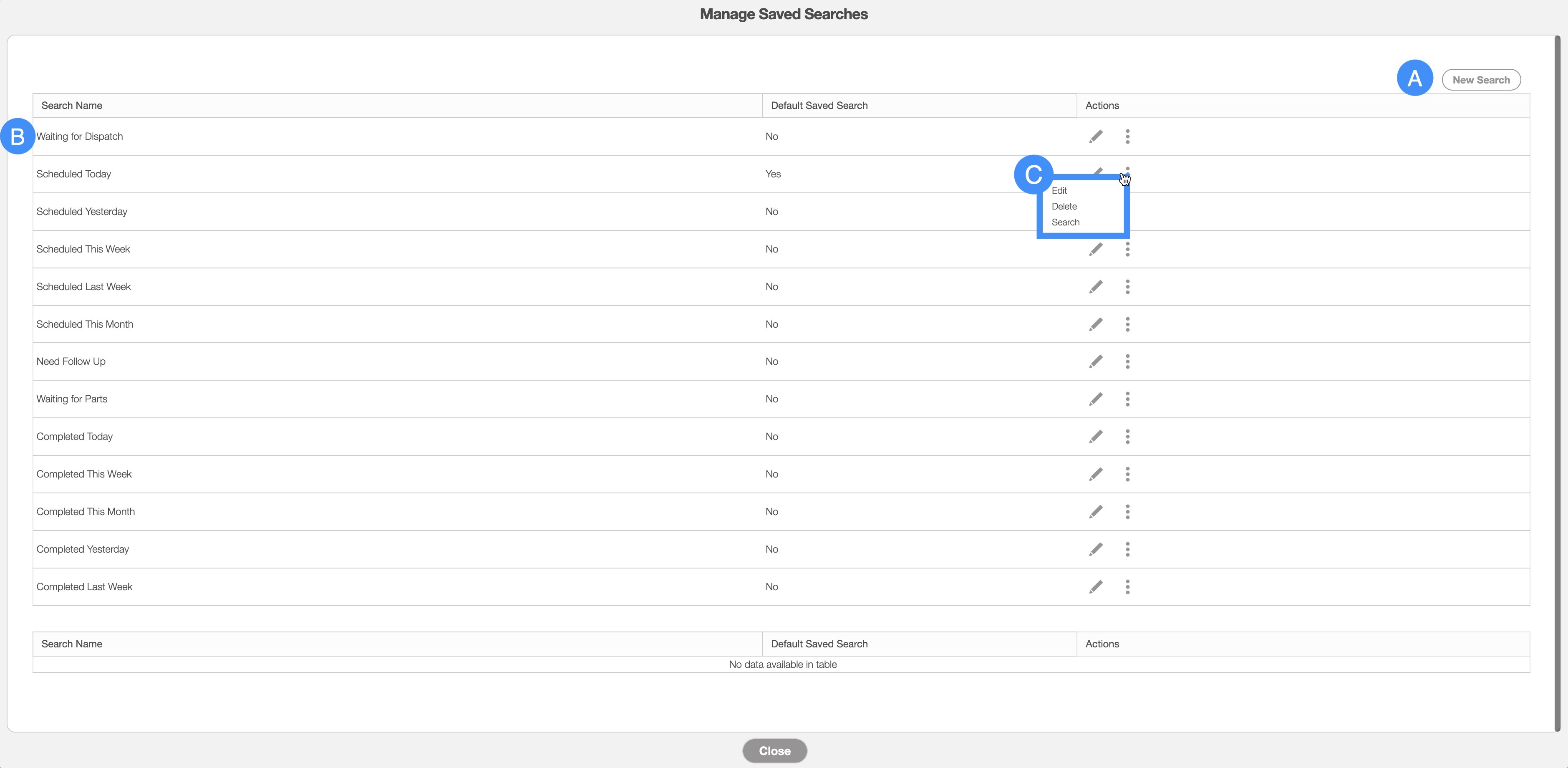Manage Saved Searches
