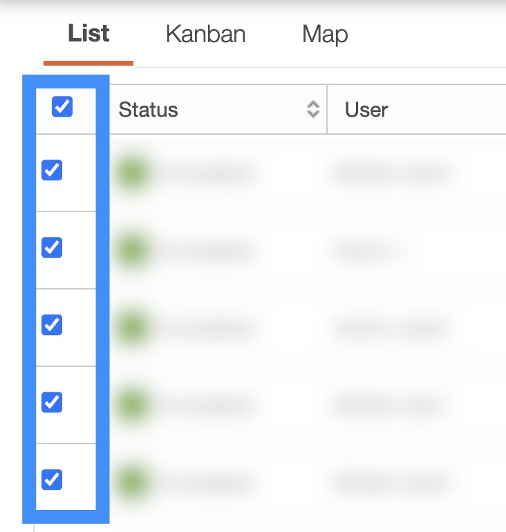 The checkboxes (multiple selection area) found to the left of the "Status" column, will allow you to select either one or multiple work orders to manage, edit, remove, etc.:
