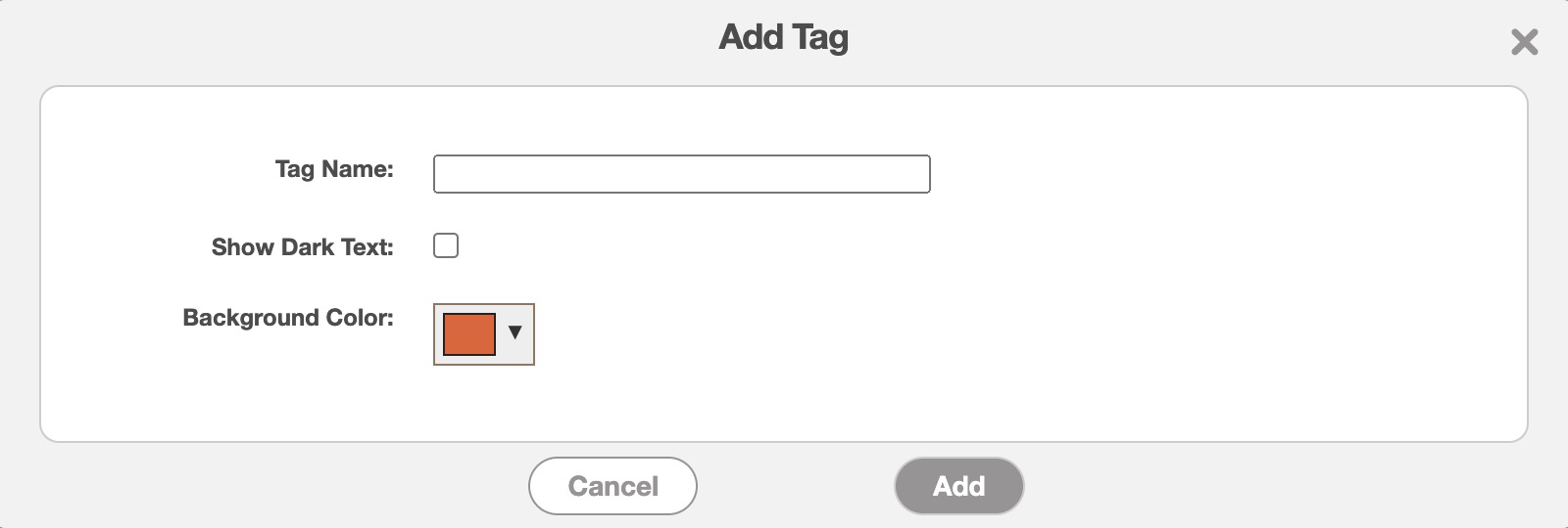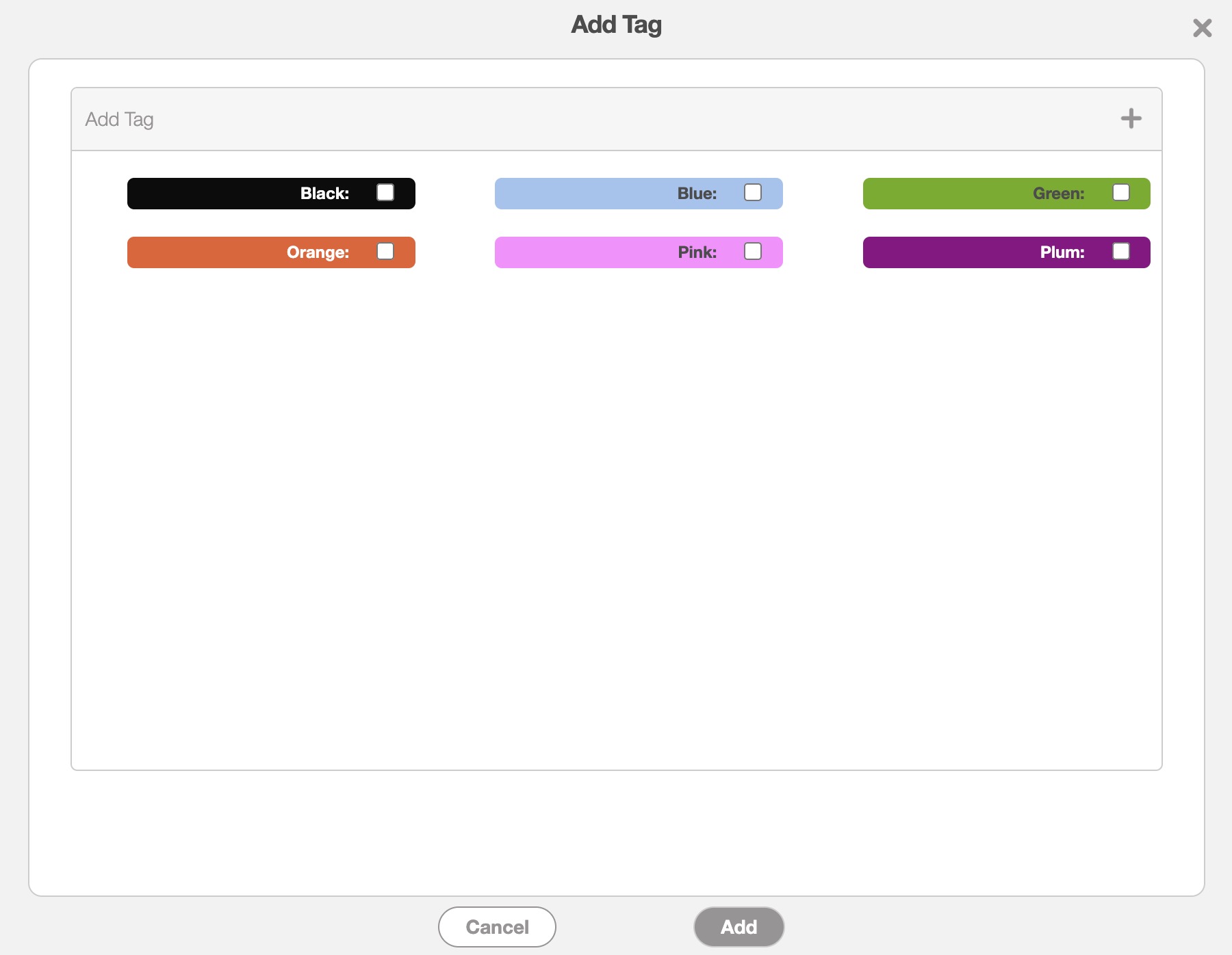 Once you click on the Plus Sign icon, the Add Tag pop-up window will then appear: