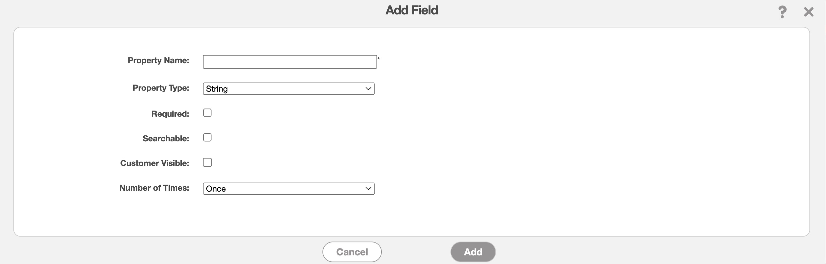 When you click the Plus Sign button, the Add Field pop-up window will automatically appear. Input the desired name, type, etc. into the fields provided and then click Add to save the new work order custom field: