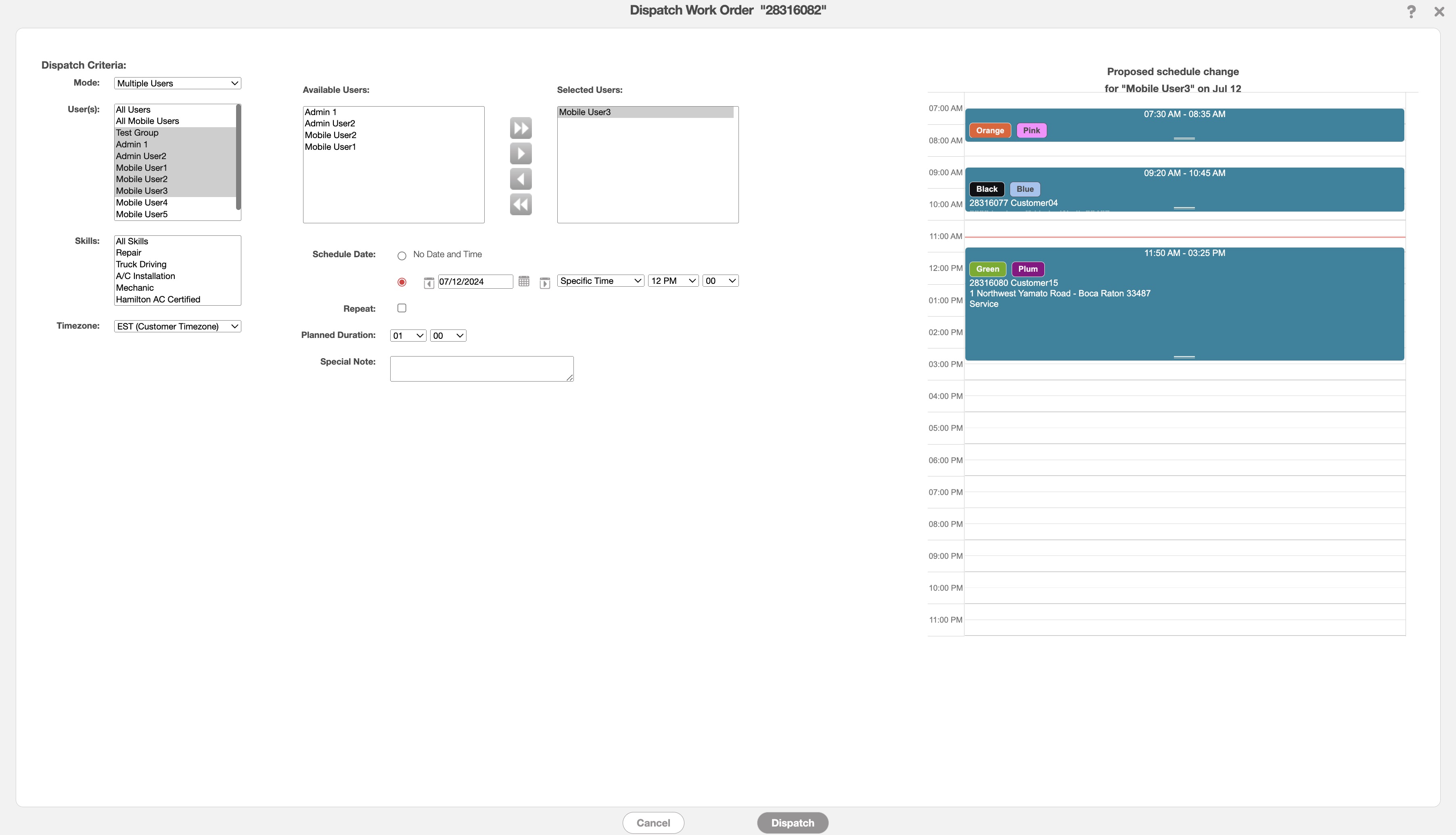 Once you add tags to a work order, the tags for other work orders will appear on the Dispatch Work Order pop-up window: