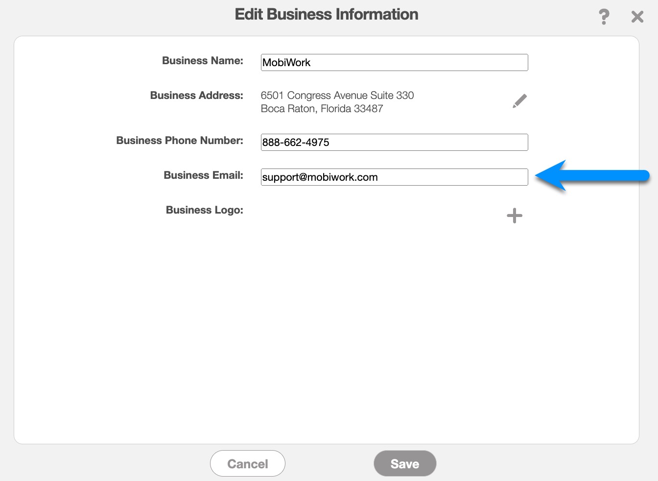 Your business address will also be used for route optimization when dispatching users to the work site, appointments, and more.