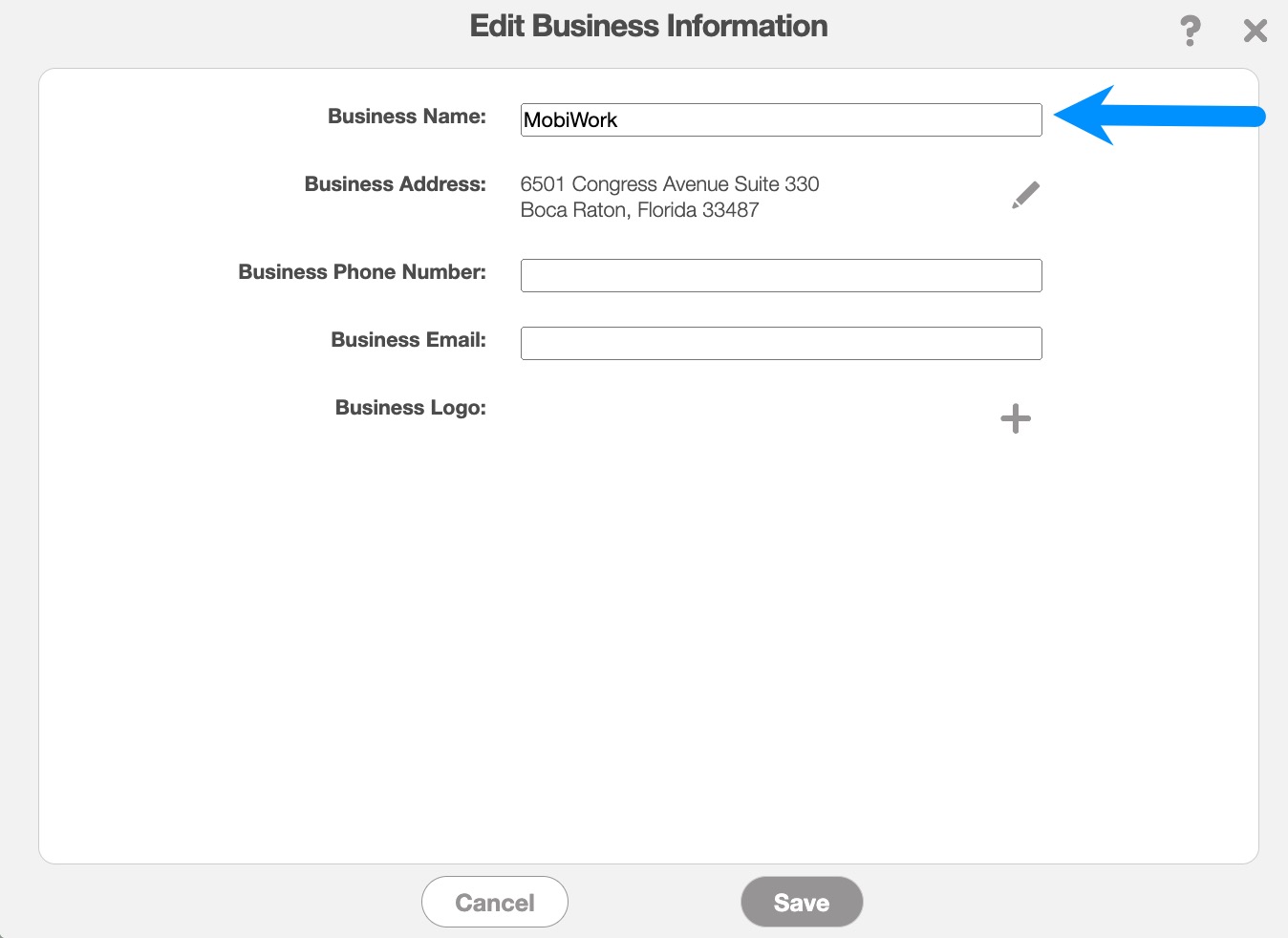 - Note: The business name that you enter here, will be used for customer-facing purposes (e.g., invoices, quotes, the customer portal, generic forms, the display name for emails, etc.):