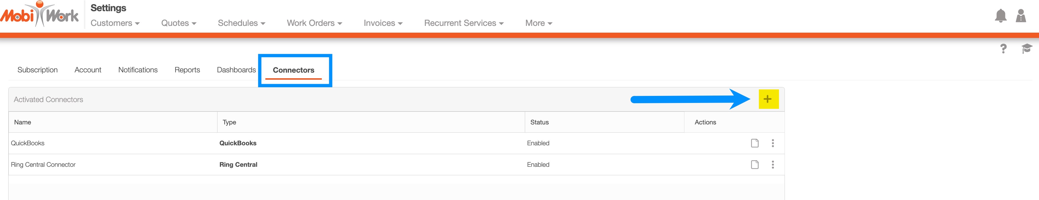 - Select the Connectors tab and click on the Plus Sign: