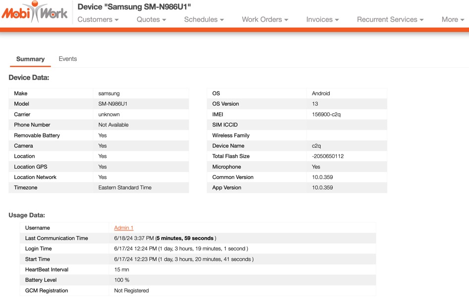 Whenever a user logs in, you'll be able to see device details, such as the manufacturer, location, and battery level. Let's show you what that looks like: