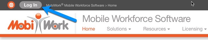 - Navigate to www.mobiwork.com and click on they grey "Log In" button located in the top left corner: