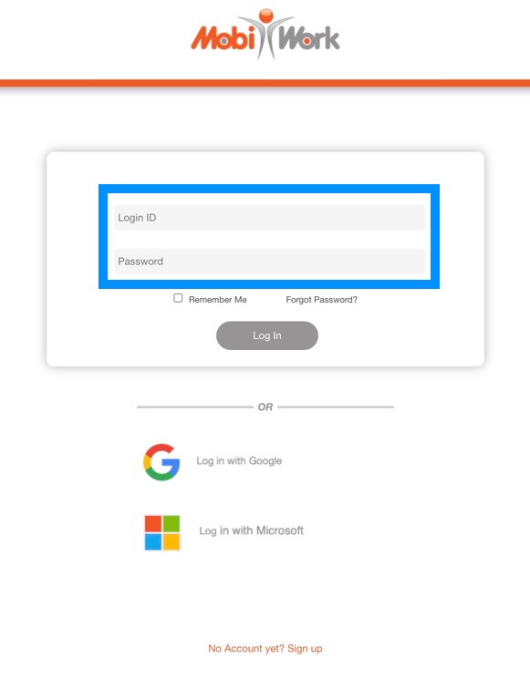 When you first log on to MobiWork on the web interface application, you will have three different sign-on options: