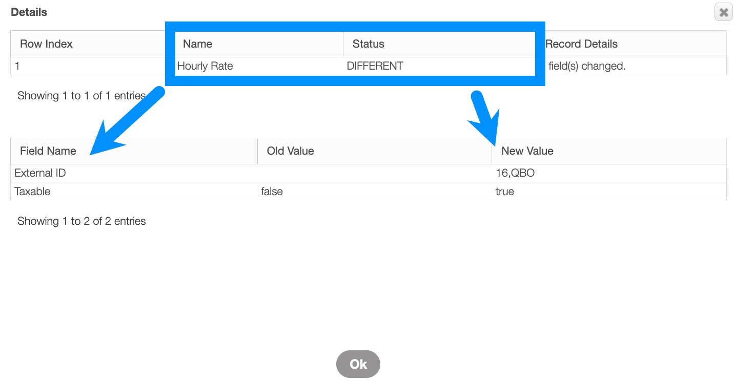 - You'll be shown a list of all parts and services found in your accounting software. For a list of all fields that will be imported, choose "Click for Details" for each line item: