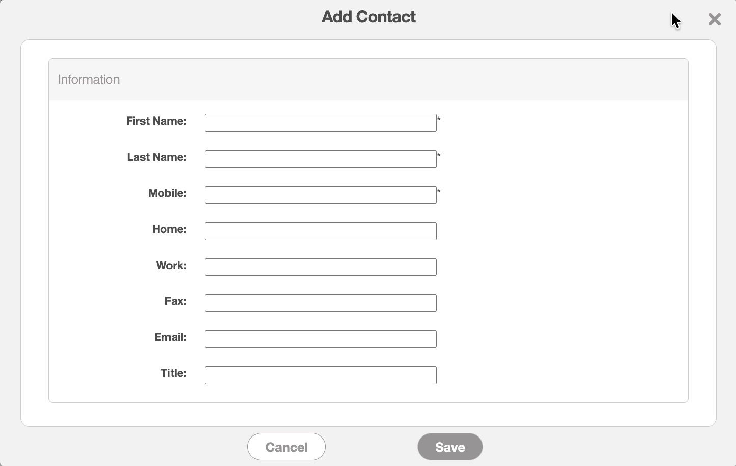 When adding a customer contact you will be able to enter their name, contact information, honorific, and more in the Add Contact pop-up window: