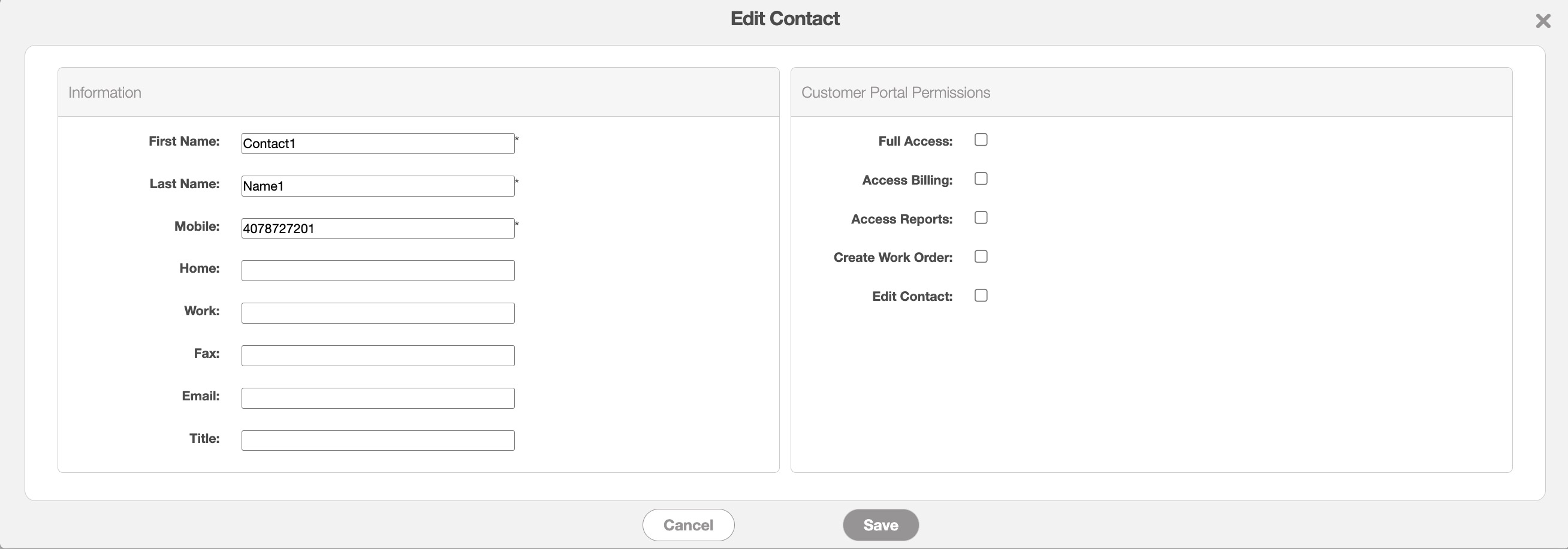 Simply mark the desired checkboxes of the permissions you would like the customer contact to access on the customer portal.