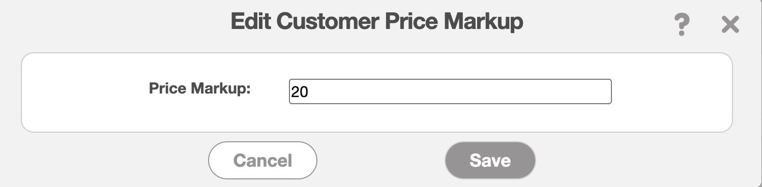 To input the markup for the customer, navigate to the View Customer pop-up window and access the "Billing" tab. From the "Billing" tab, click on the Pencil icon on the "Price Markup" column to enter the markup. The Edit Customer Price Markup pop-up window will then appear: