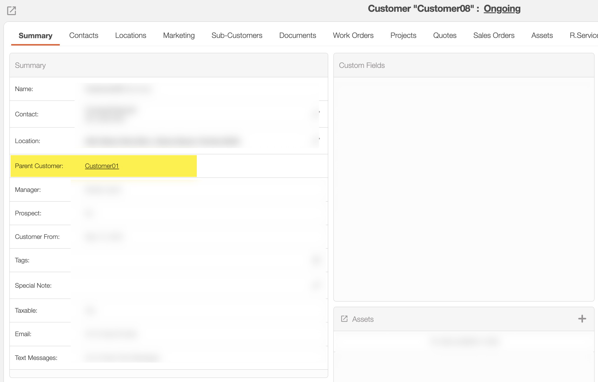 Similar to parent customers, prospects, and business or residential customers, sub-customers will appear when searching in the Customers feature page. You can identify a sub-customer by opening the View Customer pop-up window and seeing that the customer has a parent customer. You can directly access the parent customer from this link: