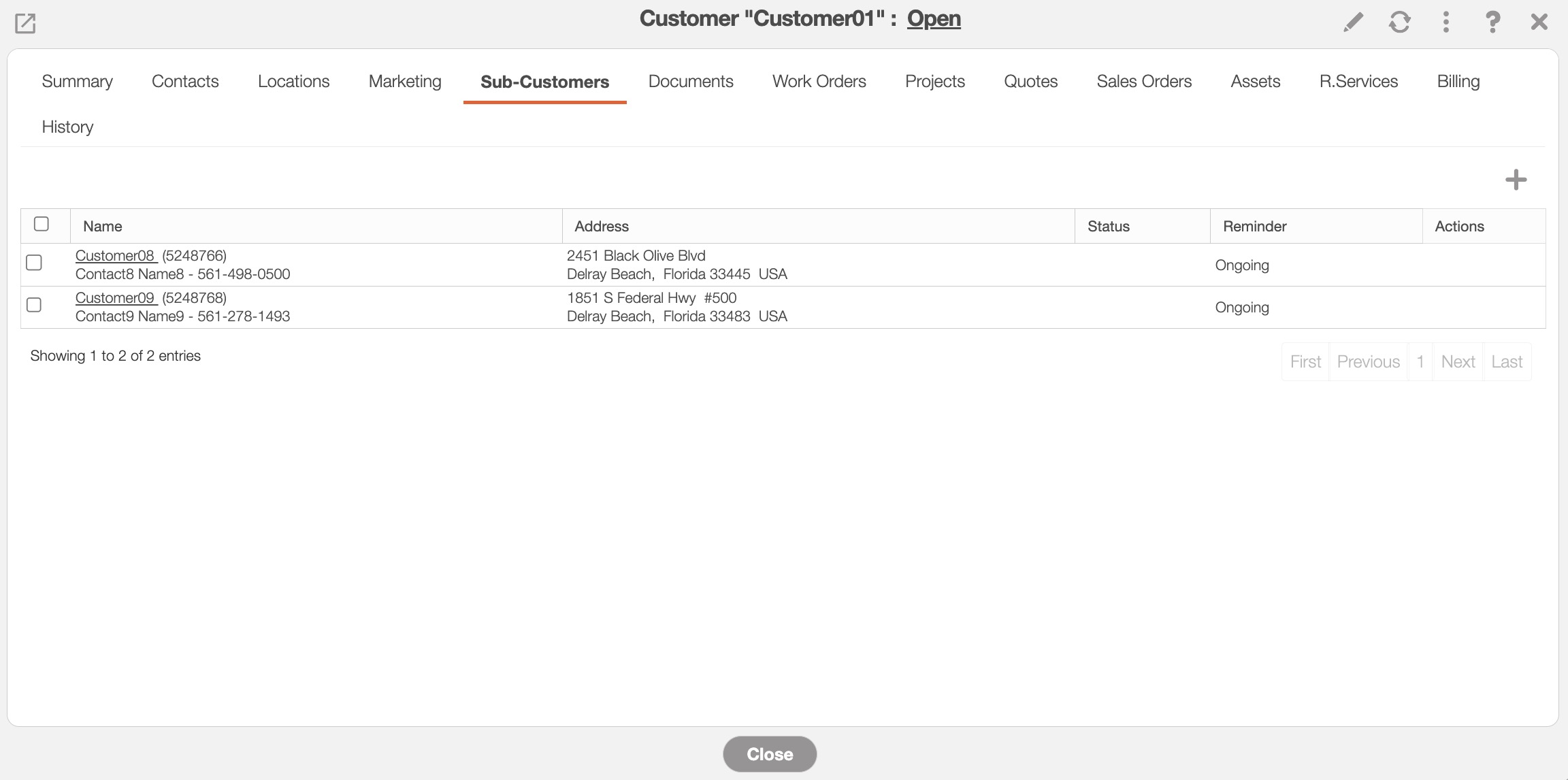 Likewise, if you are in the parent customer's View Customer pop-up window, you can see all the associated sub-customers in the "Sub-Customers" tab: