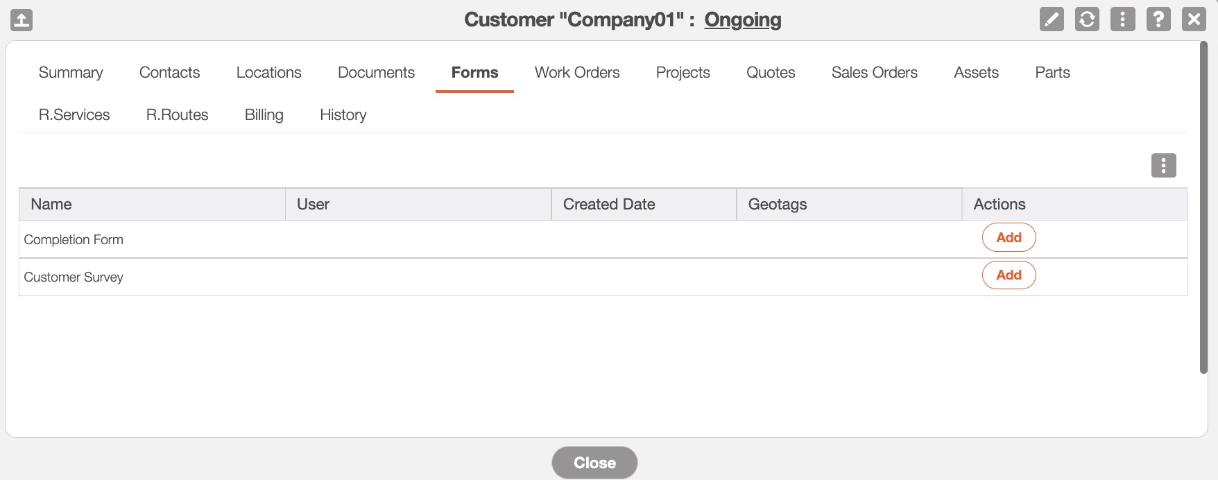 Each time a new customer is created, the designated forms will automatically be accessible in the "Forms" tab: