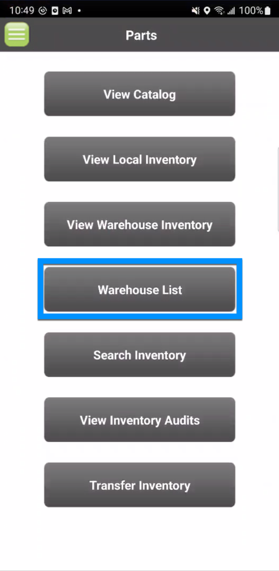 - Within the mobile device actions panel, choose the Parts (or Products) feature.