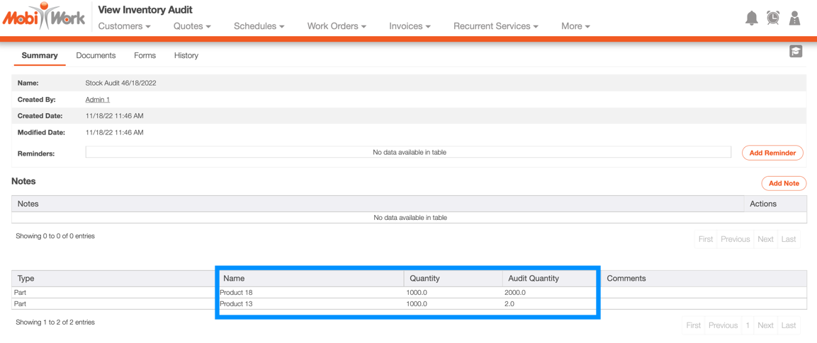 - Now when viewing the Stock Audits for the warehouse, this particular audit will be shown.