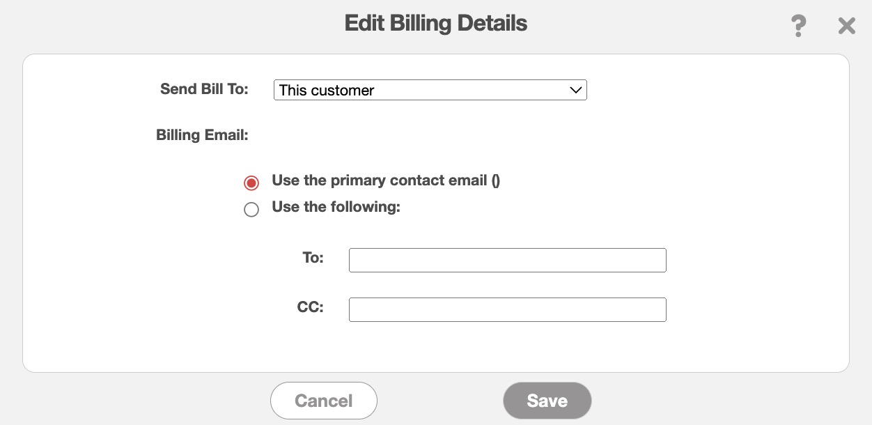 The Edit Billing Details pop-up window will then appear; this pop-up window is identical to the one that you can access from the customer's invoice: